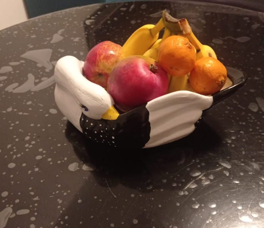 Produto em cerâmica pintada artesanalmente.